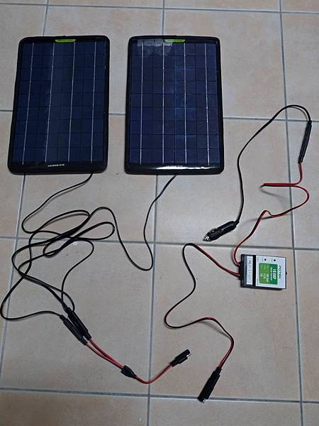 前一陣子去工研院上了個太陽能的課程,原本是想來研究一下露營車如果要用太陽能來供電,是否有機會,不過因為手上沒有合適可以拿來改裝露營車的車款,所以把腦筋動到幾台零件車的身上,既然是零件車,就是待命要拆料的車款,通常都是一放好幾個月,有需要用的時候才會去拆料,不過我手上的幾台零件車基本上都還是可開可動的情況,但是車輛一放久,電瓶就會被耗到沒電,這對零件車雖然沒影響,但是我三不五時還是會去發動一下,這時就比較不方便,因為我的零件車都是露天停放的,所以想說來搞個太陽能充電好了,畢竟大多數車輛的靜態耗電流其實不大,通常都在0.1A以內,算算不到2W,所以用個20W的太陽能板來充電,即使扣除陽光較弱的情況,還有充電控制器的效率問題,應該還是足足有餘的,所以下面先看一下我們須要的零件有三大項, 太陽能板, 充電控制器, 還有線組, 以上除充電控制器是Amazon 買的其他都在露拍購得的: