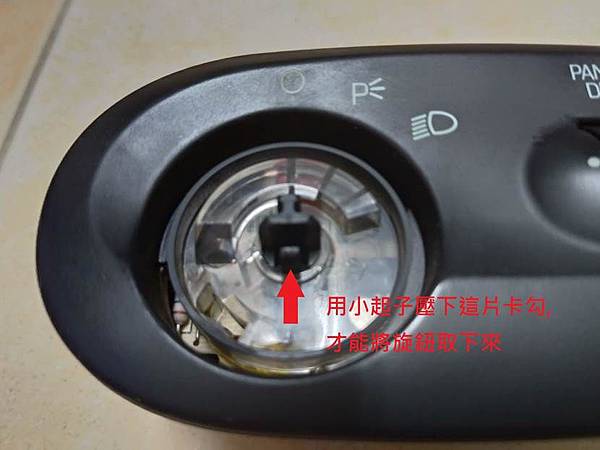 上面文章所談的用個小一字起子去推的就是旋鈕中心軸的一個小卡勾,如下面照片所示: