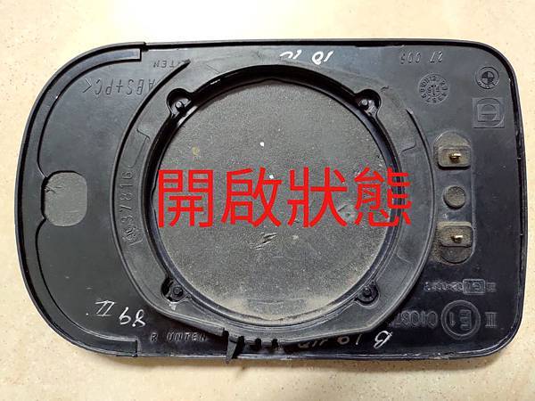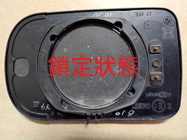 用個一字起子,把這個突起是向右推(不論駕駛座側或是副架側都一樣向右),就會帶動鏡片後方的圓框,讓卡榫可以脫離,之後就可以把鏡片取下來,請看下面兩張鏡片反面的照片: