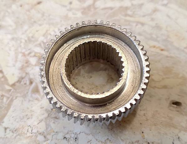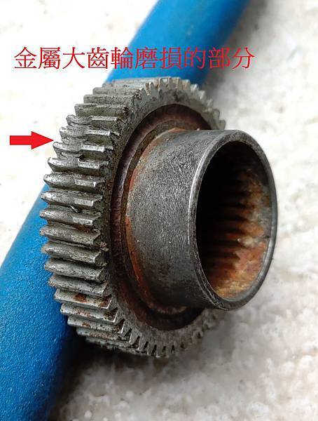 我目前看到的是最大的齒輪有磨損,正好之前有請廠商訂做了這個齒輪,請看下圖大齒輪新品: