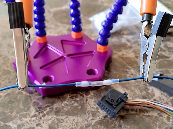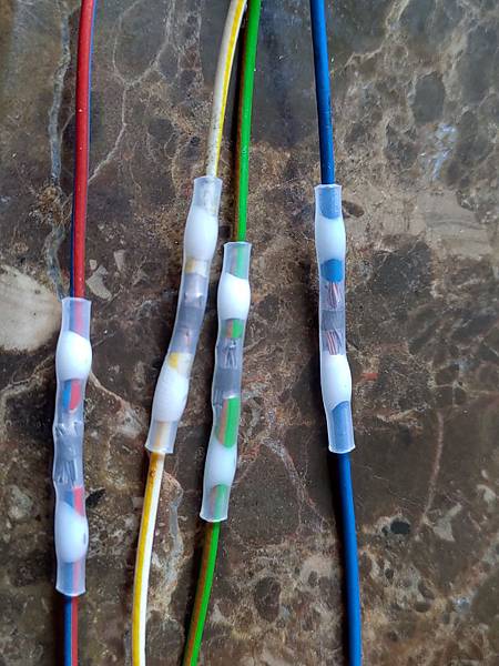 組裝就是拆除的反向順序,前面講的剪斷的電線也要焊回去,這次用的是多功能的低溫焊錫熱縮套管,用熱風槍或是打火機加熱一次就可以達到焊接及密封的功能還不錯用,焊完之後也很美觀,請看下面圖片: