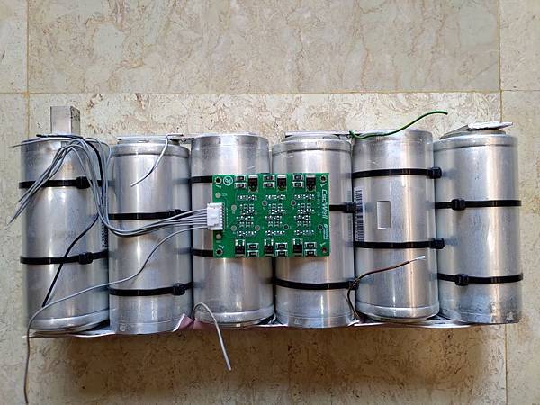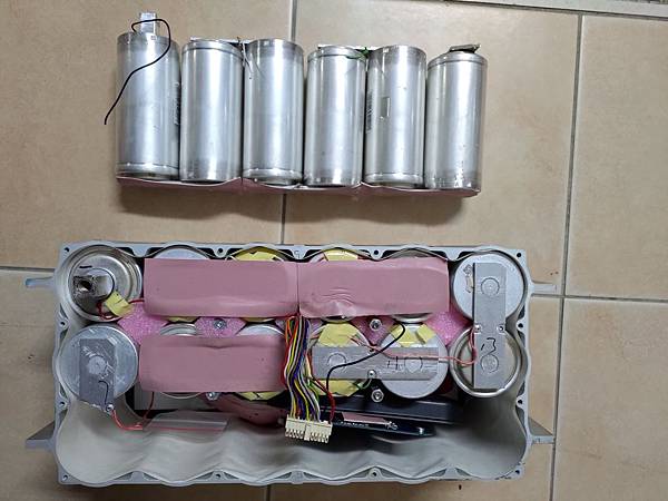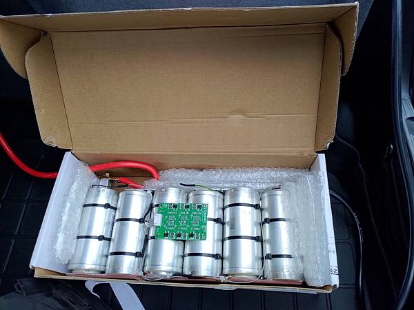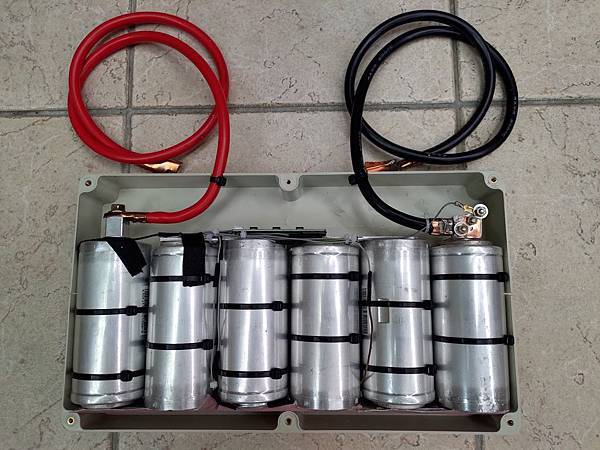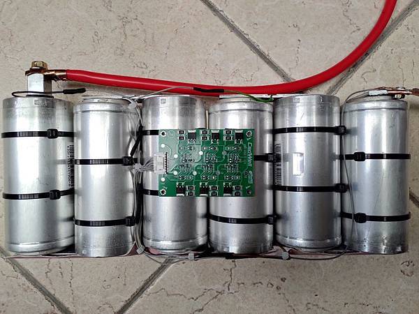 瞬間電流可以到1900A真的不是蓋的,這類模組通常是用在太陽能或是風力發電,用在車上算是小Case,另外這家Maxxwell好像被特斯拉買了,特斯拉會買的公司,產品應該有一定的水準,因為我是用在車上,所以原本18串的模組可以拆成三組六串的16V/500F的模組,下面是拆除其中一組的照片:
