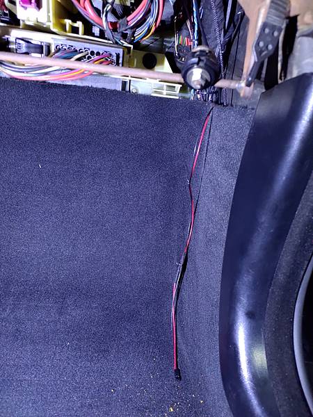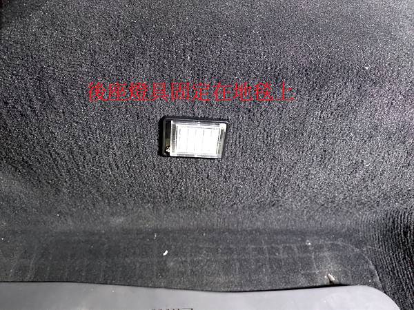 後座燈具固定的方式說明一下,因為燈具很輕薄,所以直接鎖在地毯上就可以,用螺絲穿過地毯,墊上大一點的墊片,鎖上螺帽,之後用膠把螺帽固定就可以了,燈具固定好之後把線接上,測試一下是否與車門的照地燈連動,如果正常就算大功告成。