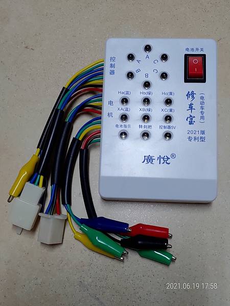 原廠控制器拔掉之後就可以把原廠的霍爾感應器線路板輸出拉出來,我們先接到一個霍爾感應器的檢測儀器先看一下,我們要用的是這個,大陸叫修車寶,請看下面照片: