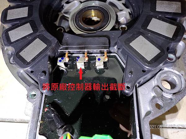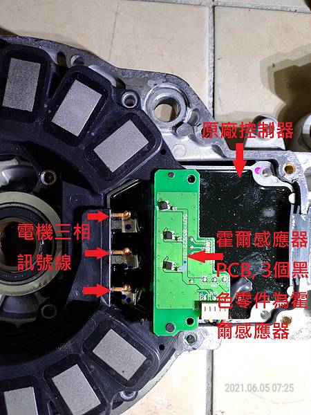 好了跳tone的部分告一段落,我們再拉回EC-03的部分,首先把原廠的控制器先拆掉,這樣我們才能夠量側霍爾感應器及直接送訊號控制馬達,請看下面照片: