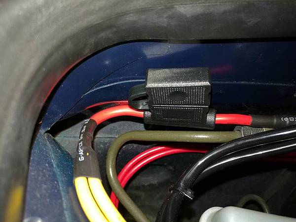 3:對於大功率的電路, 所有的零組件的規格必須足夠, 最好是能夠有足夠的容裕度(Margin), 這邊講的包括電線, 接頭, 保險絲等等, 反正大電流有流過的部份都要確認一下, 另外配線的保護也要做好, 因為車輛上的環境比較惡劣, 配線保護有做好, 可以使用的更久也避免危險, 下面就是配線的照片: