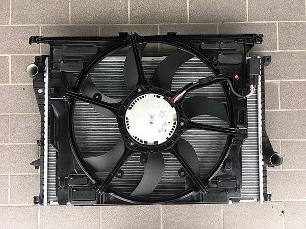 5:風扇的選擇:當初因為是買整組套件, 因為是E38通用品, E38引擎由2.8一直到6.0 這個發熱量一定是不同的, 做這個套件的廠商可能沒有考慮6.0引擎的熱量, 因此車廠老闆有幫忙尋找更大功率的風扇, 事實上後期許多BMW車款都已經使用大功率的電子風扇, 因此以找了幾個來合原廠的水箱, 看來是有機會使用的, 如果可以用這樣風扇就不須要長期處於全轉的狀況, 不過風扇控制的部份還須要再研究一下, 這邊先放幾張圖給大家參考一下, 這個進化目前還在研究當中, 之後會再來報告: